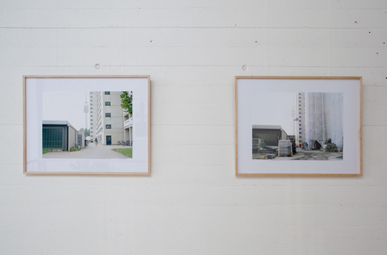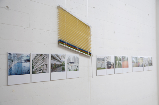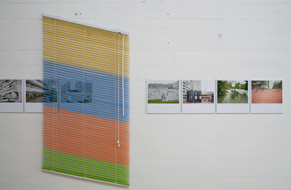 Wandinstallation Zwei C-Prints, 50 x 70 cm, zwölf C-Prints, 30 x 30 cm, Jalousie, Fototapeten, Grafik 2011